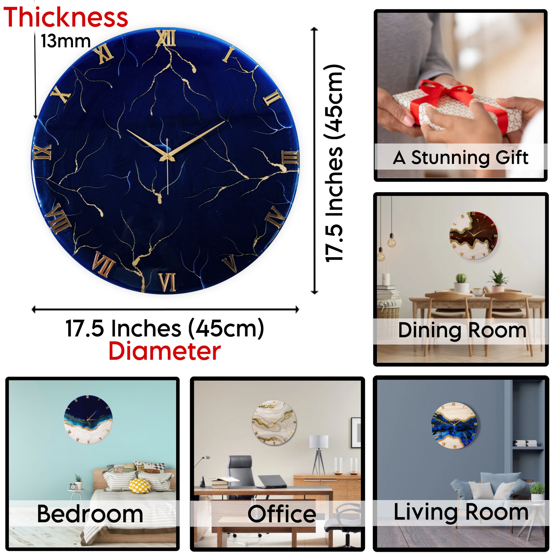 Since all the clocks are made by hand using resin art form, please expect a slight difference in the actual product as shown in the images/videos.