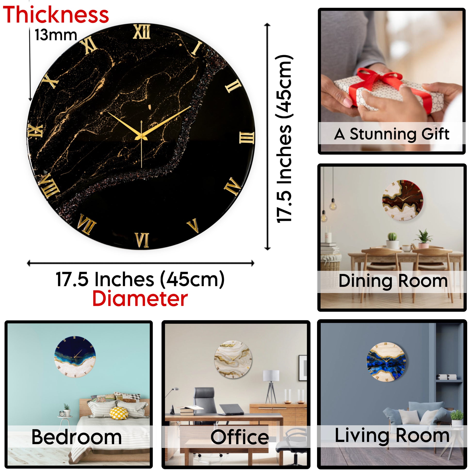 Every Clock is handmade using Resin Art. Each clock is different from the last one.