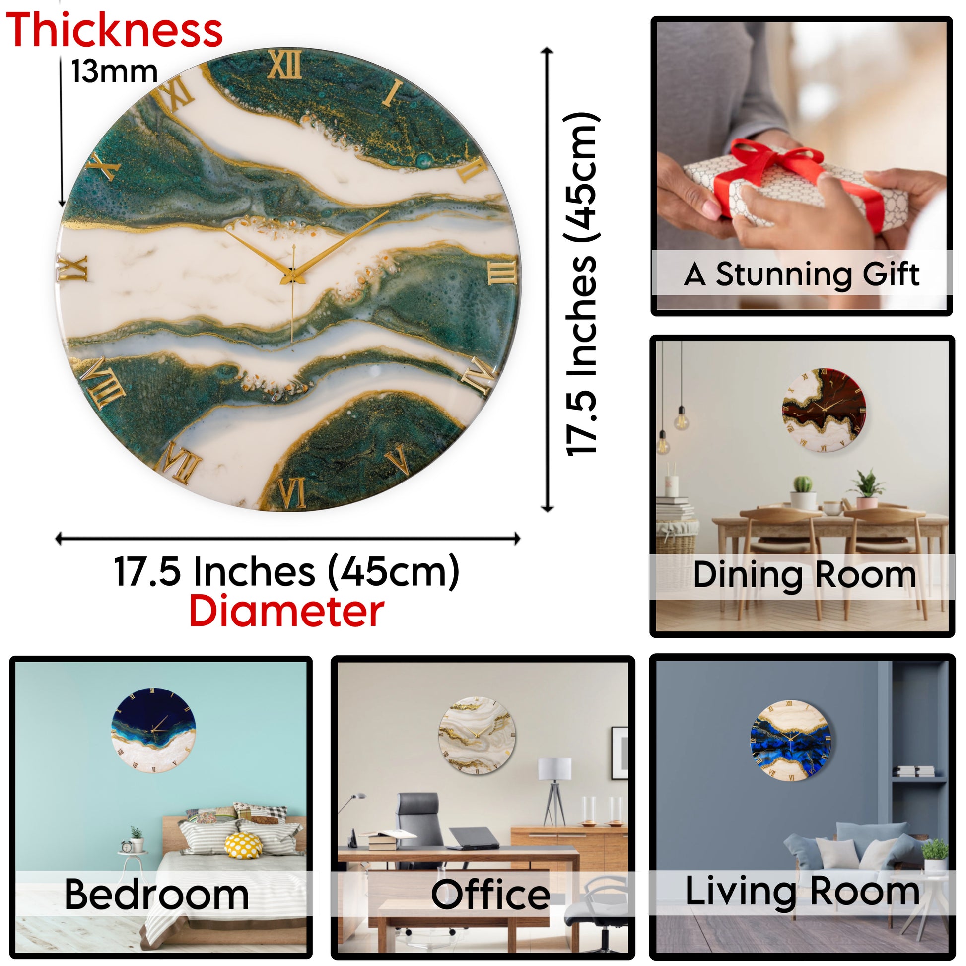 Since all the clocks are made by hand using resin art form, please expect a slight difference in the actual product as shown in the images/videos.