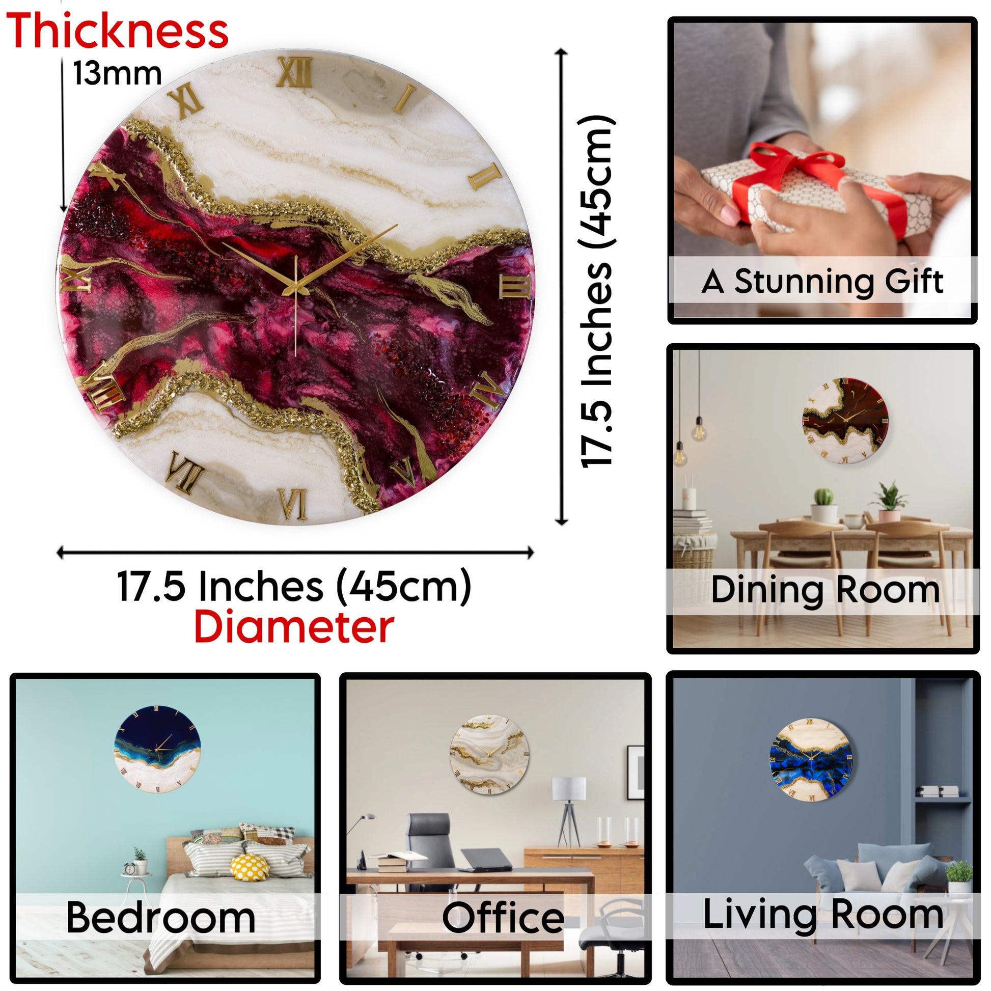 Every Clock is handmade using Resin Art. Each clock is different from the last one.