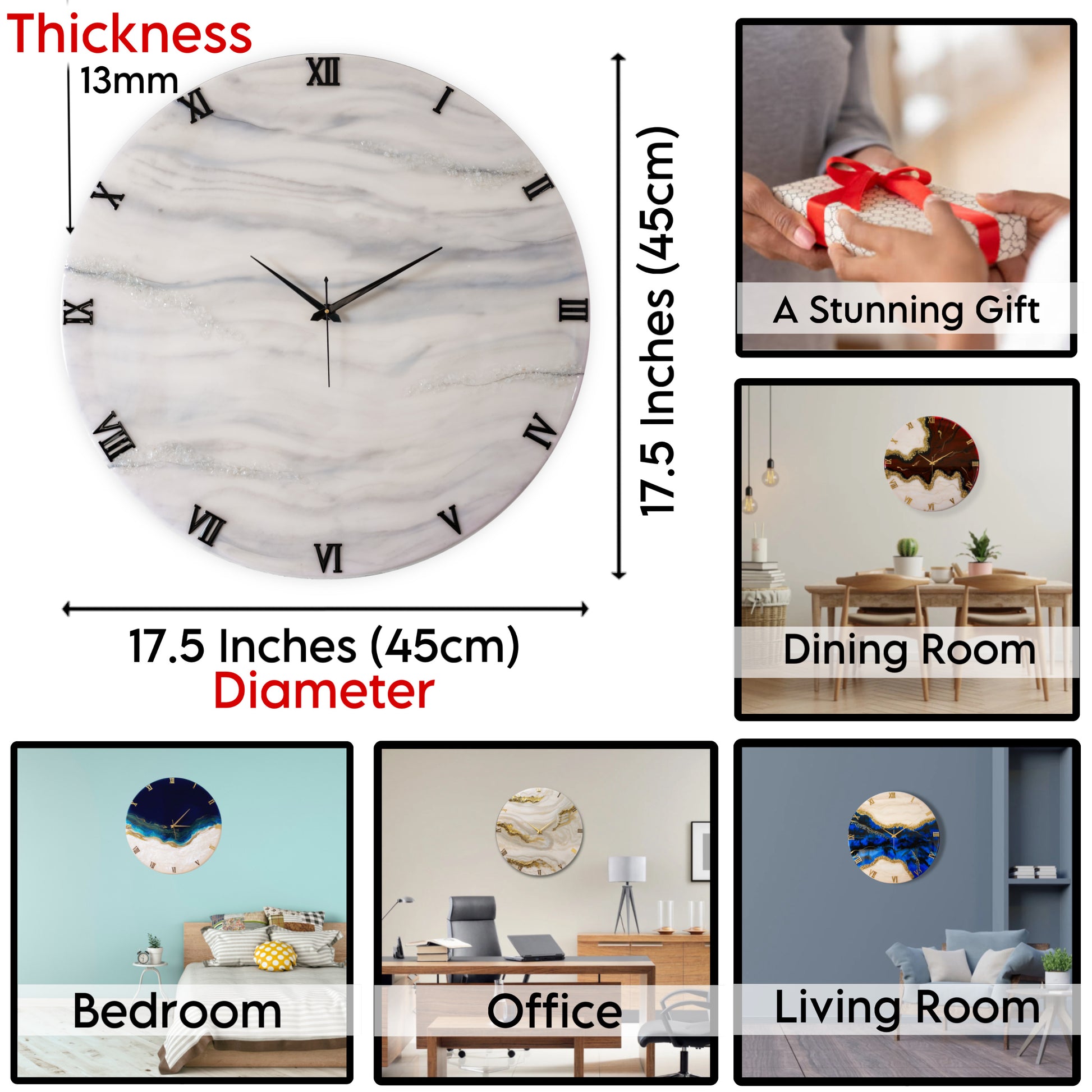 Every Clock is handmade using Resin Art. Each clock is different from the last one.