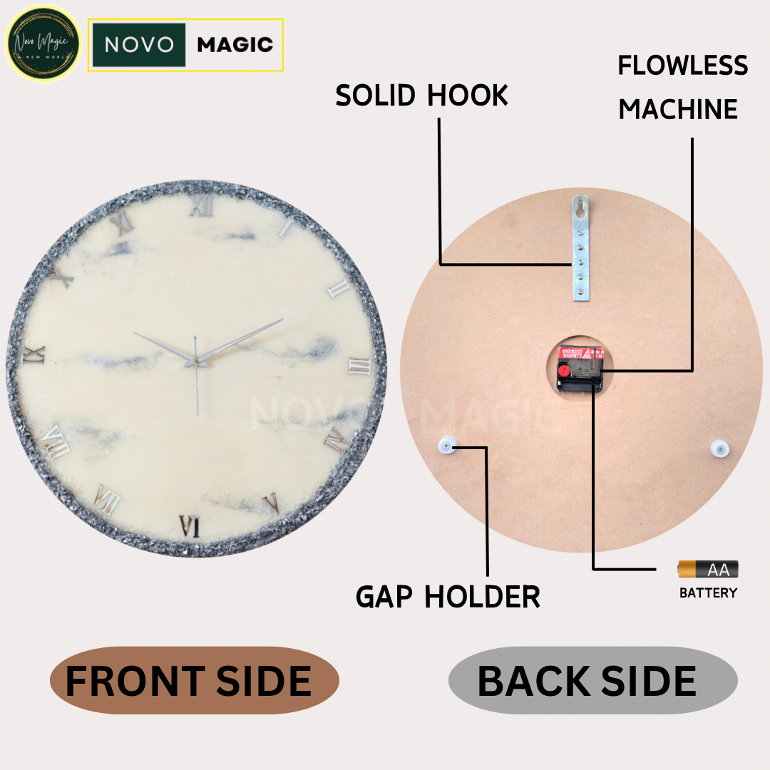 Every Clock is handmade using Resin Art. Each clock is different from the last one.