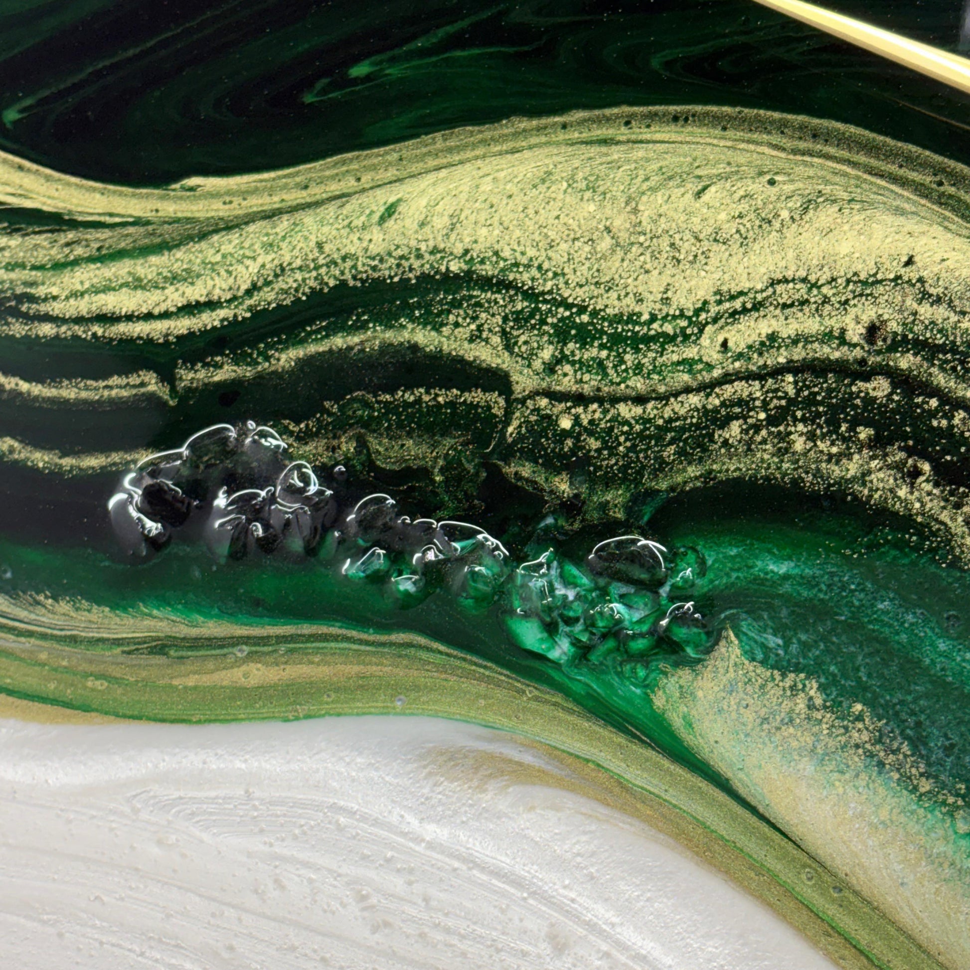 Resin is poured by hand and guided carefully as it flows into form. This stage defines the character of the piece. Because resin moves freely, no two pours ever behave the same way.